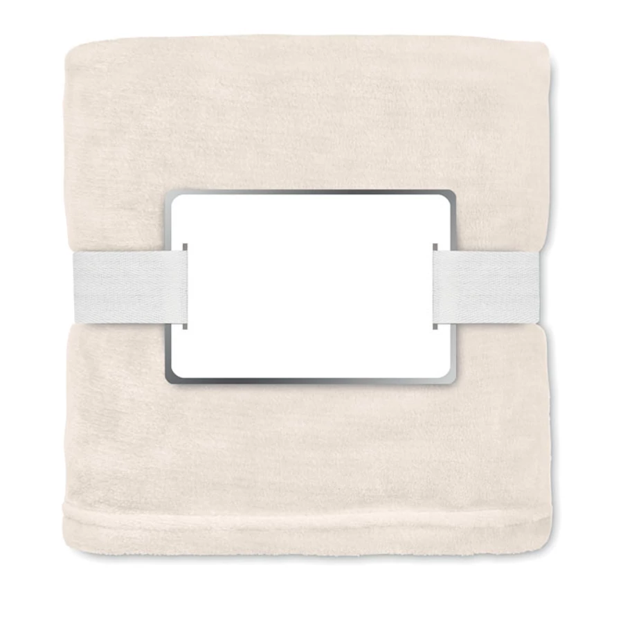 280 g vastag RPET flanel polár takaró. Szalaggal átkötve, emblémázható kártyával szállítjuk.