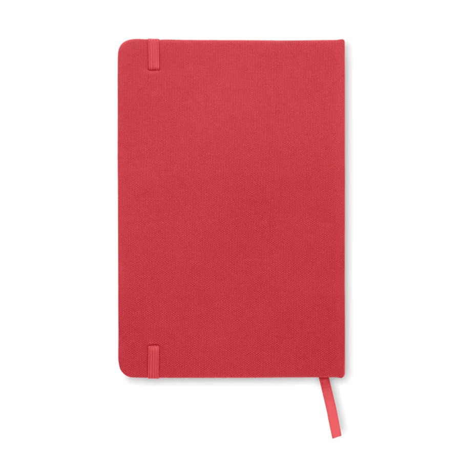 A5 jegyzetfüzet 600D RPET keménytáblás borítóval. Cérnafűzött. 160 vonalas oldal (80 lap) újrahasznosított papírból. Hozzáillő elasztikus zárópánt és könyvjelző szalag.