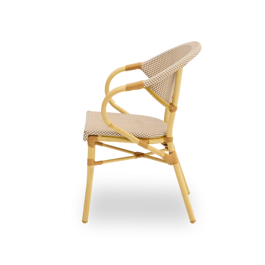 A CAMILLO technorattan szék egy klasszikus sörkertszék és modern megjelenés ötvözete. Természetes stílusa zökkenőmentesen illeszkedik bármilyen környezetbe. A finom színek és a technorattan szövés könnyűvé, mégis rendkívül tartóssá és stabillá teszi a széket. Egyszerű, mégis elegáns formája biztosítja, hogy soha ne menjen ki a divatból, így tartós kiegészítője lesz a sörkerteknek, kávézóknak és éttermeknek. A szék könnyedén kiegészíti a különböző stílusokat és esztétikai preferenciákat. Az ülőfelület alatti technorattan kereszt további stabilitást és tartósságot biztosít. Ez a technikai tulajdonság ellenállóbbá teszi székünket az intenzív használattal szemben. A székvázak könnyű alumíniumból készültek, így könnyen mozgathatók, miközben kivételesen tartósak maradnak. Az alumínium konstrukció azt is biztosítja, hogy a székek rozsdaállóak, ami elengedhetetlen ahhoz, hogy évekig megőrizzék szép megjelenésüket. A technorattan szék ötvözi a stílust, a kényelmet és a tartósságot. Tökéletesen alkalmas beltéri és kültéri használatra egyaránt, kényelmet és eleganciát kínálva, bárhol is helyezik el. Nem csupán egy bútordarab, hanem befektetés a tartósságba, a stílusba és a kényelembe.